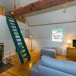 Naast een stenen open haard heeft deze woning ook een TV. Deze villa beschikt over een badkamer met een apart toilet, een badkuip en een douche.